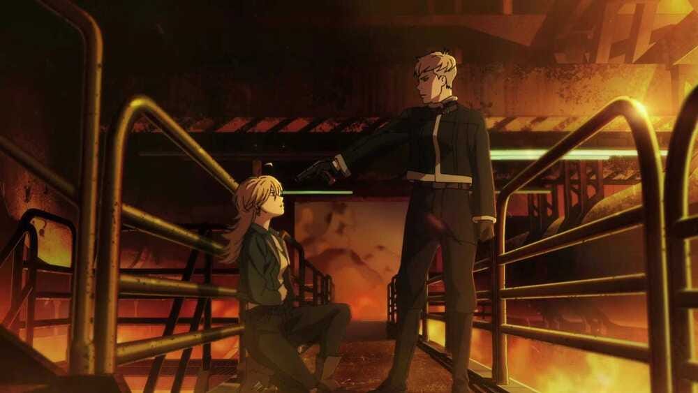 That’s already a lot of detail that gets introduced but mostly ignored. We also get some infodumps about Chris’ backstory, including when we see her get interrogated by Inga and another Russian spy, Sergei (notably, all of the Russian characters speak with American accents in the English-language dub of the series, which stood out as a choice that may have been based on expediency rather than quality; I assume everyone just speaks Japanese in the original audio track). There’s some discussion about how Chris tried to fake her death during an airport disaster to escape the spy life, but since her body was never found, Inga knew she was still alive, and she was still able to recognize Chris despite plastic surgery that changed her appearance. Sergei would like to execute Chris on the spot, and he gets especially violent in his questioning, but Inga says she needs to be kept alive.